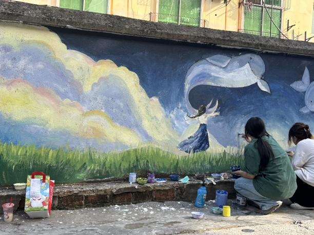 6月4日,武汉学院“长江生态画廊计划”公益团队与江夏区小荷花青少年绿色公益发展中心“多彩江豚”项目开展跨界合作,通过艺术创作与社区动员相结合,在江夏宁安社区以生态保护墙绘的形式宣传江豚保护理念。