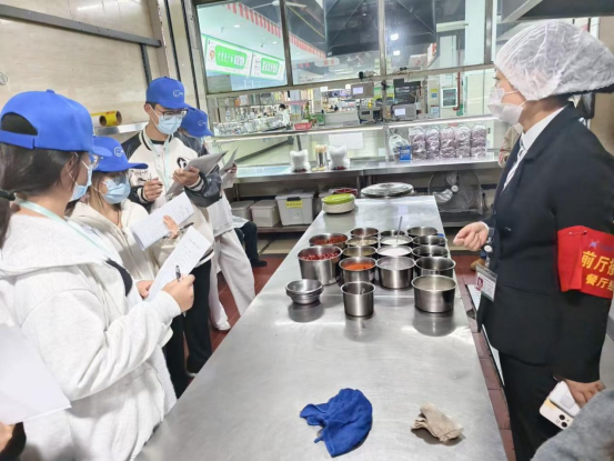 在学校食堂经理的引导下,检查小组先后走进后厨、仓库、档口及监控室等场所,围绕食品安全、环境卫生、服务质量、创新管理四大维度现场考核打分,通过现场核验、随机抽检、台账审查、后台监控观察等多元方式,对食堂运营各环节进行评估。