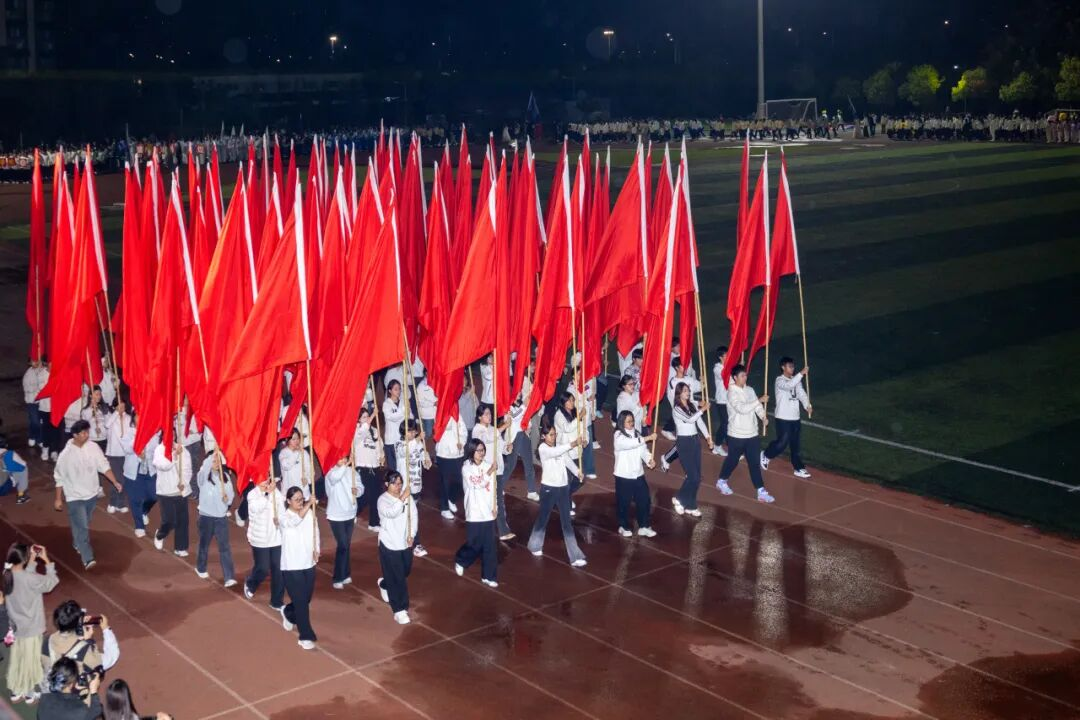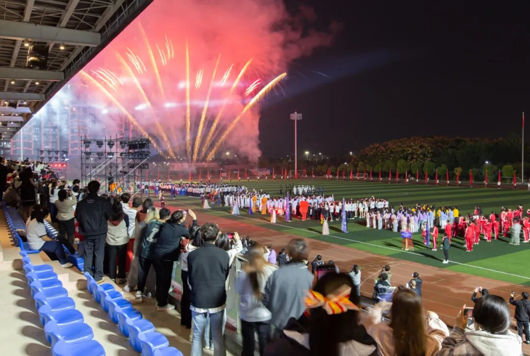 300名学子手持花球,伴着动感节拍带来啦啦操表演,通过充满张力的动作与象征拼搏与团结的复杂队形变换,如潮水般此起彼伏,以蓬勃活力完美诠释了本届运动会的竞技精神与青春风采。