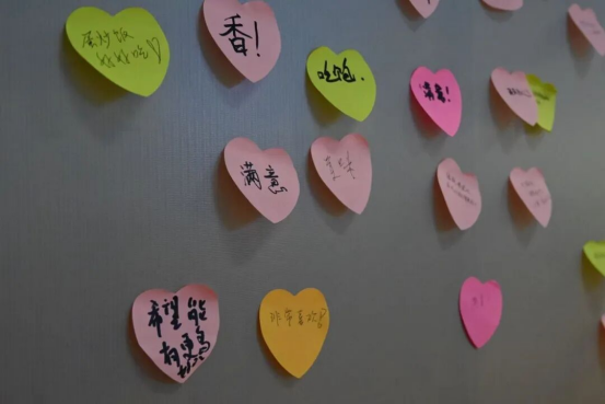 五彩的便利贴上,写满了"希望食堂越来越好"、"这个冬天,愿所有人都被温柔以待"等暖心话语,也有“希望食堂增加蒸菜”、“多开甜品窗口,让日常生活多点甜”等建议,简单的展板变成了情感的载体。