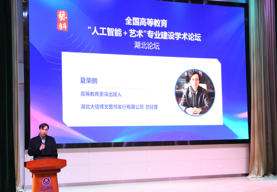 11月16日,由中国纺织出版社有限公司主办,武汉学院与湖北大信博文图书发行有限公司承办的全国高等教育“人工智能+艺术”专业建设学术论坛(湖北论坛)在武汉学院刘炽平报告厅隆重举行。本次论坛聚焦“人工智能+艺术”专业建设的路径创新与学科重构,吸引了来自清华大学、中央美术学院、上海工程技术大学等全国70余所高校的240余名专家、学者及行业代表参会。