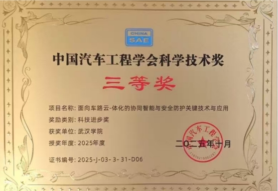 2025年度中国汽车工程学会科学技术奖励大会暨高等级奖项技术分享会近日圆满落幕。我校交叉学科数智应用研究院申报的项目《面向车路云一体化的协同智能与安全防护关键技术与应用》荣获中国汽车工程学会科学技术奖三等奖。