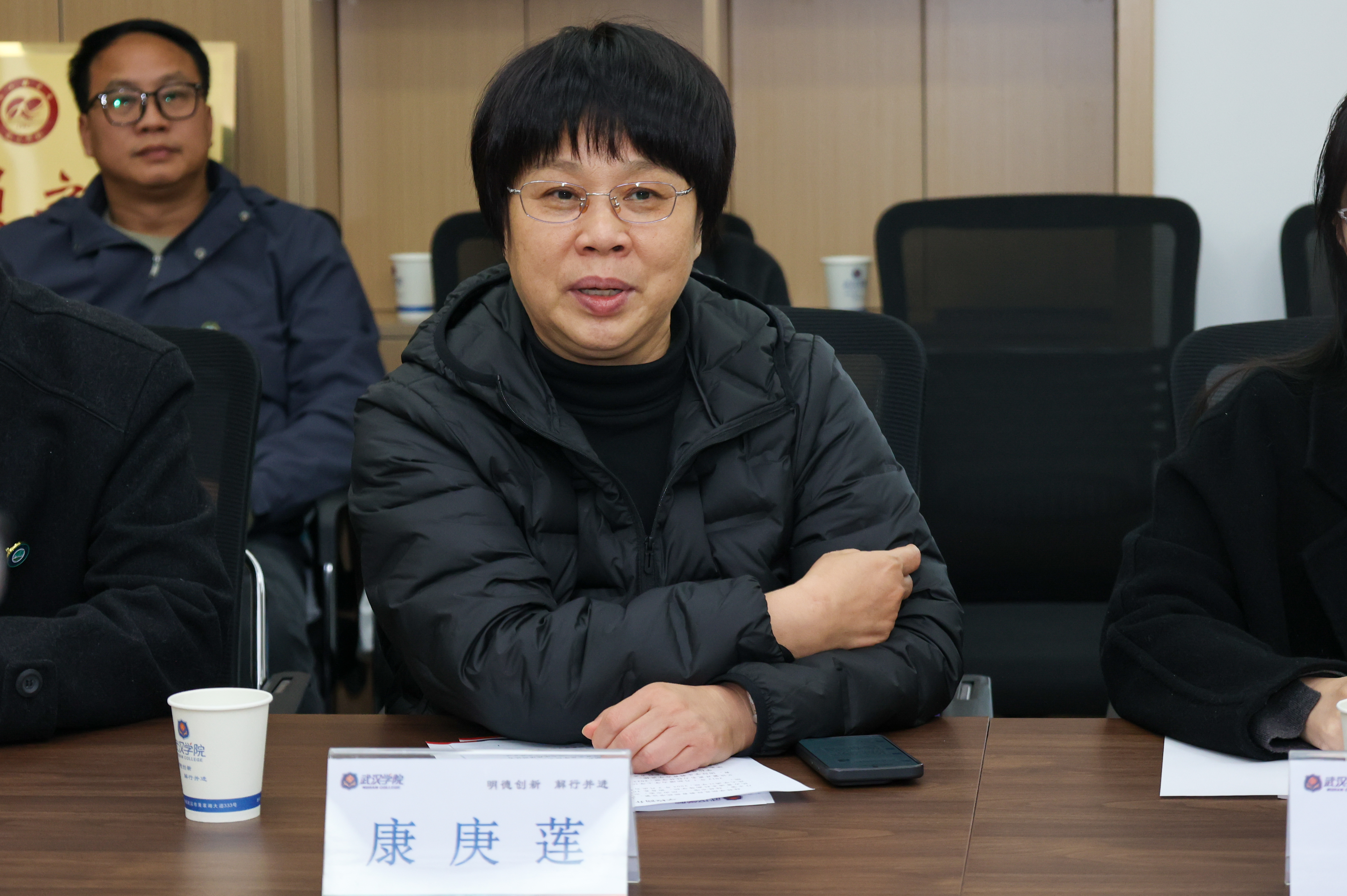 康庚莲对我校的热情接待表示诚挚感谢,并简要介绍了桂林学院的基本情况。她表示,武汉学院在党建思政工作中形成的特色理念、创新举措与实践成果,为桂林学院提供了宝贵思路。希望两校能在未来进一步深化相关领域的合作。