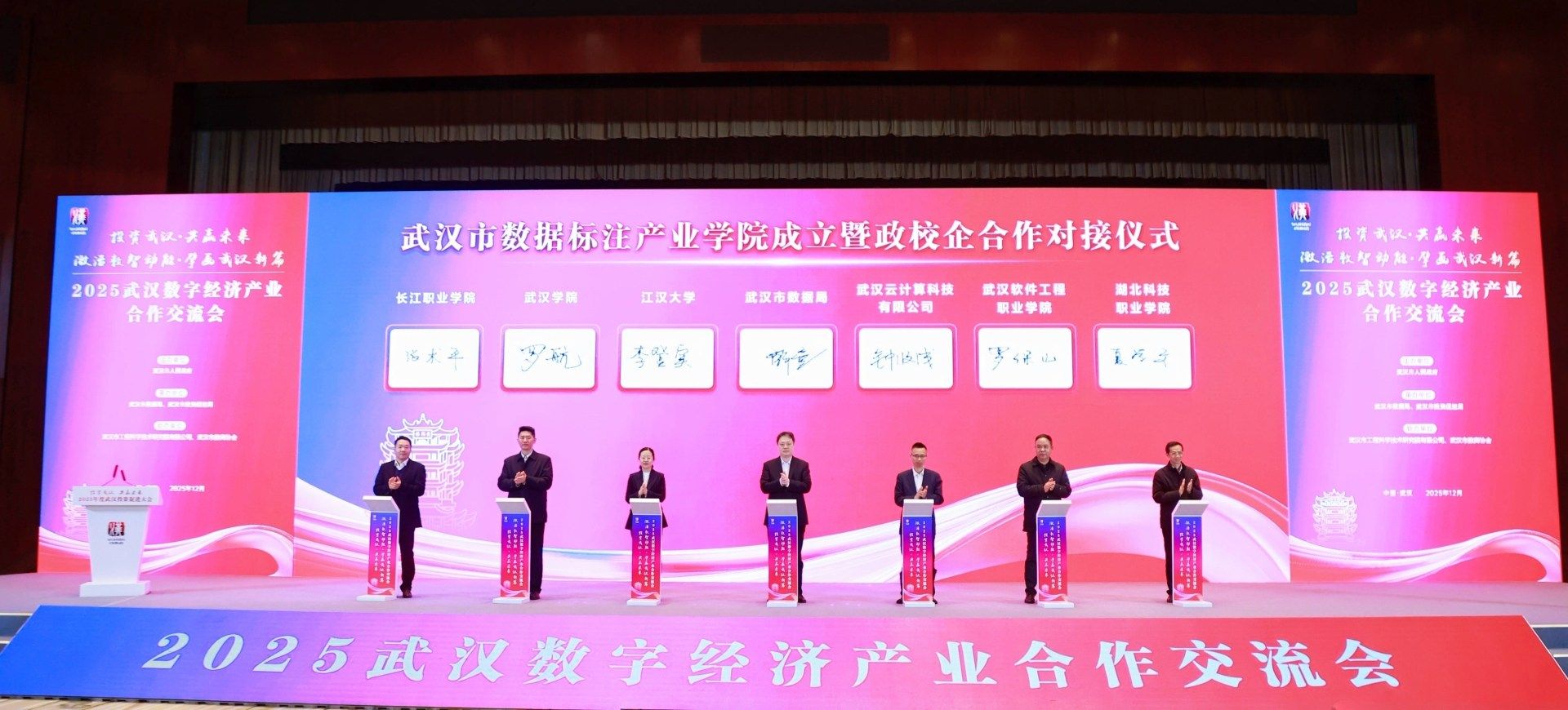 会上,全国首个数据标注产教融合中心(武汉)正式揭牌启用,武汉市数据标注供需对接公共服务平台同步上线。与此同时,由江汉大学、武汉软件工程职业学院、长江职业学院、湖北科技职业学院和我校5所本地院校联合组建的武汉市数据标注产业学院(以下简称“产业学院”)正式成立。罗航教授受邀登台参与政校企合作对接仪式,见证这一产业协同发展的重要时刻。