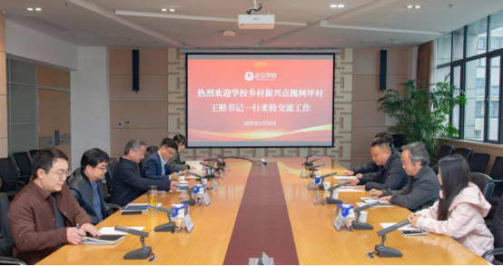 陈祖亮对王照一行来访表示热烈欢迎,对槐树坪村长期以来对学校驻村工作队的关心与支持表示感谢。在共同观看学校宣传片后,陈祖亮详细介绍了学校办学历史、组织架构、办学理念、学科专业建设、产教融合及人才培养等方面情况。