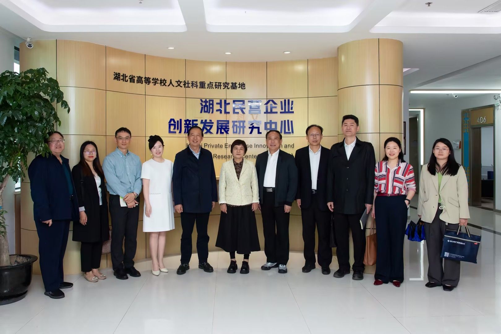 4 月 13 日下午,全国政协常委、湖北省政协副主席王红玲一行莅临我校调研指导工作。会前,调研组实地参观湖北省高等学校人文社科重点研究基地 —— 湖北民营企业创新发展研究中心,详细听取基地建设运行、科研成果转化等情况介绍。
