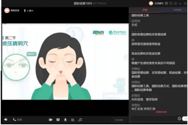 通识课部罗玮老师在她的第一堂课上就坚持直播授课,让学生看到自己。授课过程中偶尔打开通讯工具的摄像功让学生一睹老师真容,能一定程度上拉近与学生间的距离,增加亲切感。“现实感”还体现在教师对学生的关注,金融学院汪舟扬考虑到同学们在家使用手机和电脑进行线上学习可能会产生用眼疲劳,于是在课堂休息期间带领同学们做眼保健操,也会在课堂休息期间播放音乐、小视频等进行适度放松,以保持师生间的亲密关系。