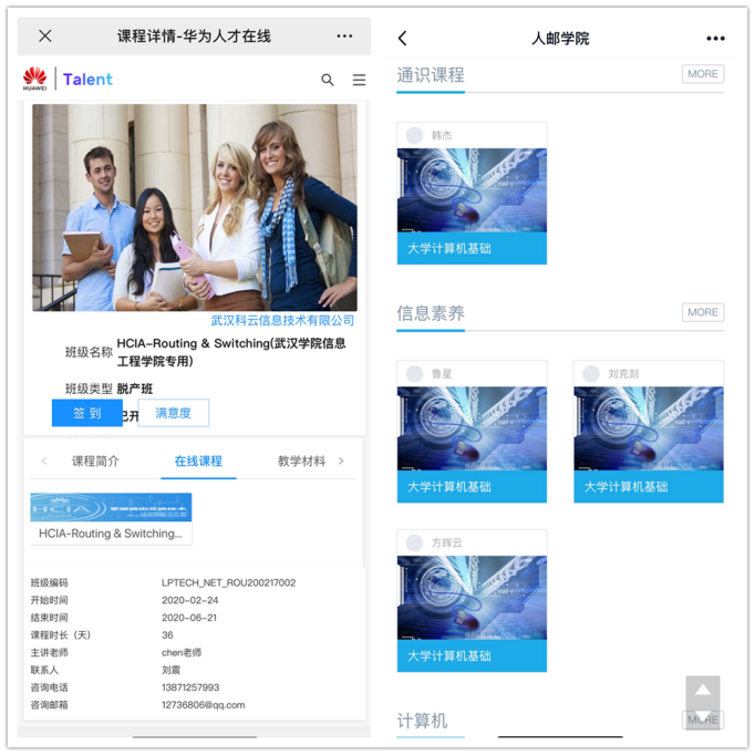 在线上教学资源上,老师们背靠中国大学慕课、学堂在线、超星尔雅、智慧树等各大在线教学平台的网络课程资源,其优势是保证了课程资源的优质和教学备课的高效。然而也在一定程度上导致了课程资源存在缺乏针对性的适宜度问题,“最好的”未必就“最合适”。因此我校在平台选择上采取集中与分散的原则,以中国大学慕课平台为主,根据专业性与教学需要,兼顾其他平台。如信工学院的《计算机应用基础》课程选择了人邮学院平台,华为班的《路由与交换技术》选择了华为ICT学院。