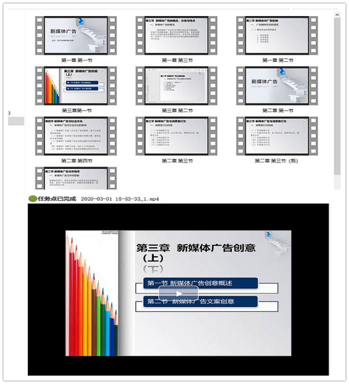 然而,并非所有课程都能找到对应且契合的资源,如艺传学院朱琪老师的《新媒体广告》课程。朱老师面对相关慕课资源的空缺,最终选择了自制微课的方式,利用手机和电脑为学生录制微课资源。