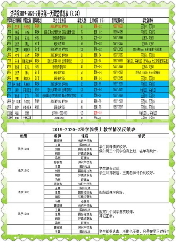 法学院线上教学工作已经开展一周了,从督导和学生反馈情况来看,法学院整体教学秩序井然,教学效果良好。任课教师教学态度认真,准备充分,工作热情饱满;学生到课率高,学习积极主动,师生互动较好,课堂氛围融洽。线上教学体现出了法学院教师和学生良好的教风和学风。这一成绩的取得离不开法学院高效务实的教学管理和保障工作。