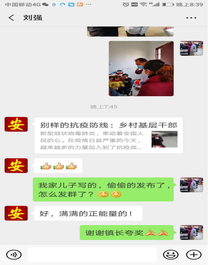 这篇文章在我的小镇传播开了,很多人知道了还有这样一群人在默默无闻的为抗击疫情做贡献。最主要的是我的文章鼓舞到了乡村基层干部们,让他们的工作更有激情和自豪感。也让村民们有了安全感,我感到无比自豪和满足。