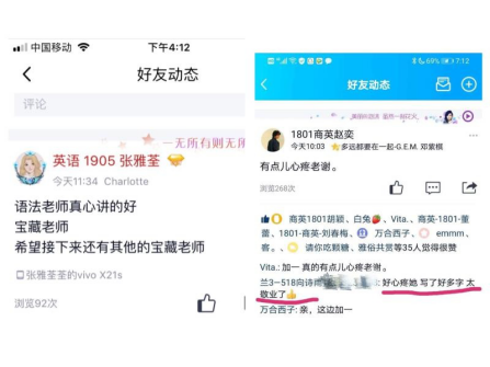 老师们的付出,学生都看在眼里。他们在课上努力听课学习,课后积极完成作业,并纷纷为老师的敬业点赞。