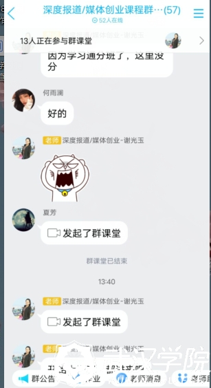 老师们一方面在群内提供课程PPT、电子参考资料,开展辅导作业、答疑等,另一方面一旦在线教学平台出现网络卡顿,学生无法登录,则可以尽快转移到QQ群上课。