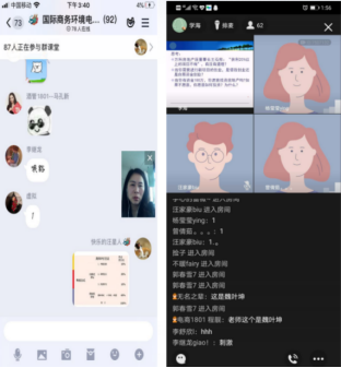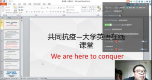 英语课需要师生互动,老师们利用各种网络平台展示PPT,用语音和视频授课,在课上发起讨论,让学生开麦进行英语对话。