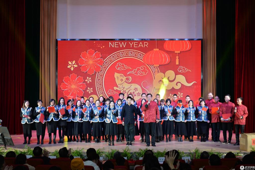 1月8日晚,武汉学院2020年新年联欢会在刘炽平报告厅举行,武汉学院创办人、校董会主席陈一丹、校董会成员陈致、全体校领导出席,全校教职工积极参与,共同谱写了一曲欢乐的新年赞歌。