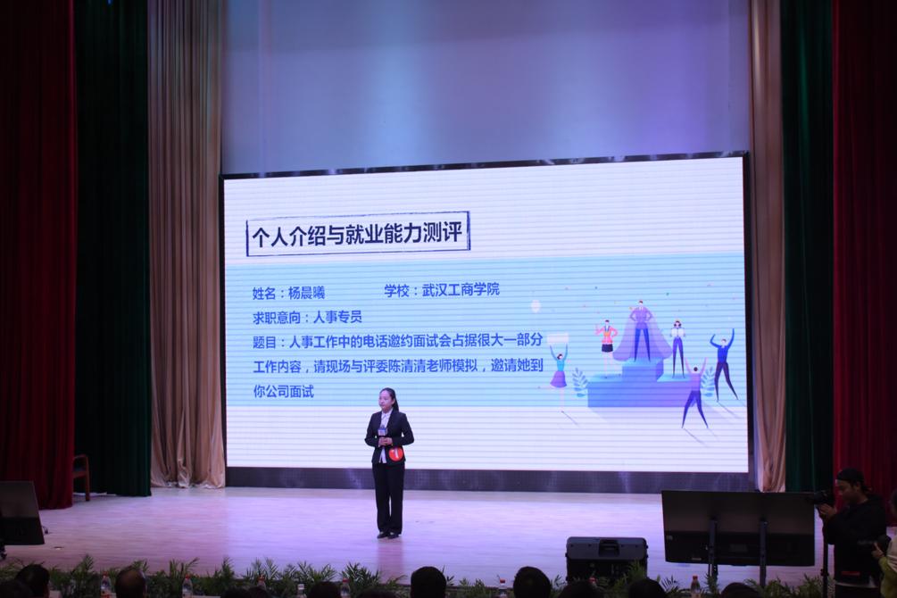 11月14日晚,第四届“我选湖北·才聚荆楚”大学生模拟求职大赛决赛黄家湖赛区在武汉学院举行,来自十所高校学生同台竞技,尽展风采。