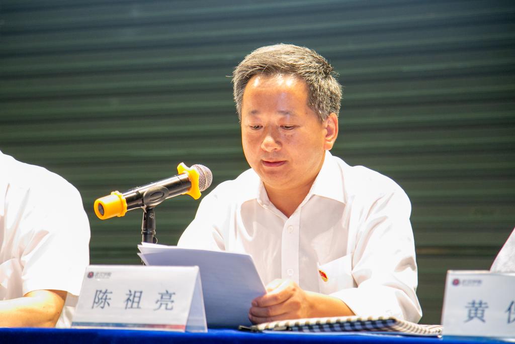 校党委书记陈祖亮在会上作动员报告,结合学校实际,就做好主题教育讲了四点意见:
