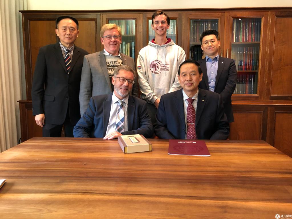 与尤金·克洛特(EugeneCloete)会谈时,李忠云首先介绍了武汉学院的创办人陈一丹先生、武汉的办学理念、办学定位及特色。尤金·克洛特(EugeneCloete)介绍斯坦陵布什大学概况和在教育和研究领域的最新进展,表达了与武汉学院继续开展学生交流项目以及在重点专业开展科研合作的意愿。会后双方签署了武汉学院与斯坦陵布什大学的合作意向书,为开展深层次合作奠定基础。