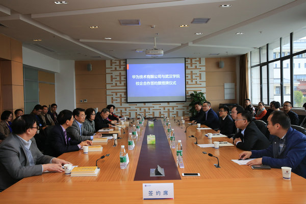 3月28日下午,武汉学院与华为技术有限公司校企合作签约仪式在我校行政楼206会议室举行。省教育厅高等教育处处长邓立红,华为公司企业培训与认证部副部长朱冬光携公司相关领导,武汉学院校监林倩丽教授、校党委书记吴怀先教授、常务副校长刘科成教授、行政副校长桂以萍女士、学术副校长郑祝君教授、国际事务副校长王达金教授出席签约仪式,部分院系和职能部门负责人、青年教师代表参加了会议。会议由刘校长主持。