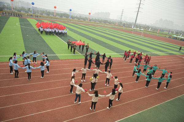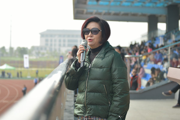 校监林倩丽教授用中英文双语宣布武汉学院第十届田径运动会正式开始。伴随着同学们热切的期盼,本届运动会各项赛事正式拉开序幕。