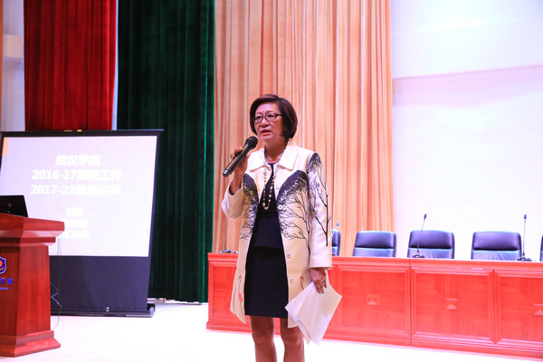 郑副校长作教学相关工作报告。她的报告围绕规范教学秩序、提高教学质量两个方面展开,简明扼要地指出了学校目前在教学秩序、教学质量建设方面存在的问题。她说,教学质量是武汉学院立身之本,每一位教职员工都应该要有危机意识和内在紧迫感,给学生提供高质量的教育教学,培养高素质人才,既是社会的外在压力和要求,也应该是我们教师的责任和职业追求。