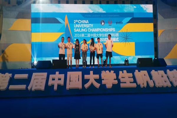 我校帆船队员上台领奖