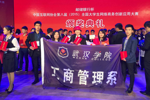 本次大赛,我校共有三支队伍报名参加。其中,由工商管理系电子商务专业苏天武、叶鹏、谢春雷、熊万爽以及市场营销专业吴玲珍共5名同学组成的“武院archers”以华中赛区网络商务创新应用主题赛一等奖的成绩挺进全国总决赛。团队项目“e装-校园装修O2O”是开发集寝室装饰装修为一体,线上与线下相结合的电子商务网站平台。