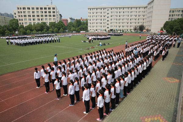 9月14日,迎新营活动中的军事训练在武汉学院如约而至。3000余名新生满怀热情全心投入,谨遵教官安排。