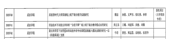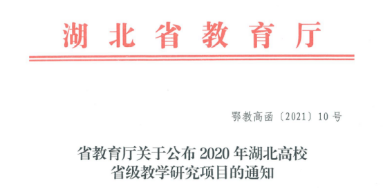 日前,省教育厅公布了2020年湖北省高校省级教学研究项目立项名单,我校3个项目成功获批立项,分别是外国语学院蔡喆老师主持的《后疫情时代大学英语线上线下混合教学实践研究》(大学英语专项)、通识教育课部黄正喜老师主持的《信息技术下高校公共体育“分层升降”线上线下混合教学模式应用研究》和外国语学院牛培老师主持的《新文科背景下应用型本科高校外语专业课程思政融入模块及路径研究--以《高级英语》为例》。
