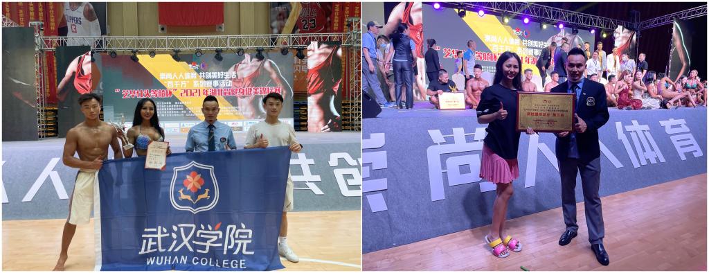 在2021年湖北省健身健美锦标赛中,武汉学院健身健美代表队分别获得男子健身模特高校公开组一等奖、男子健美高校A组二等奖、高校团体总分第三名等奖项。