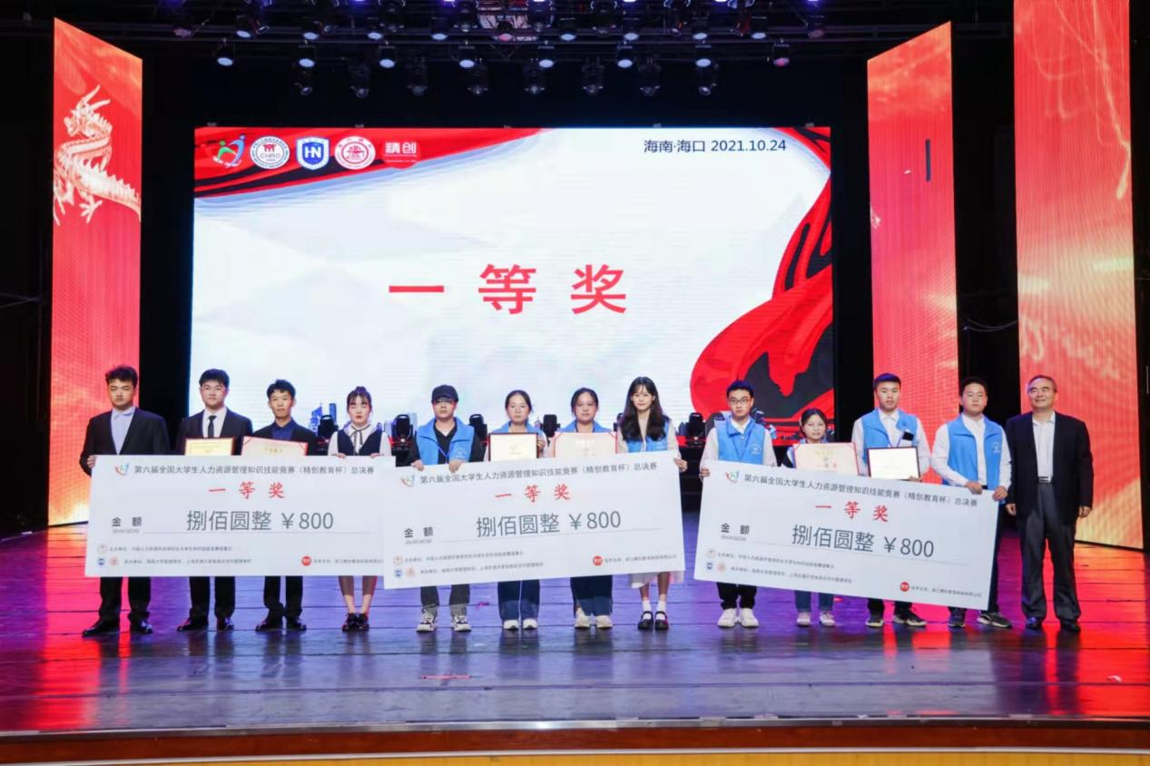 10月23-24日,第六届全国大学生人力资源管理知识技能竞赛总决赛于在海南大学举行。我校管理学院人力资源1902盘伟宁、杨家怡,人力资源1901王婧祎、张龙四位同学组成的武汉学院代表队获得全国总决赛一等奖,成为本届比赛湖北省参赛高校中唯一一个获得全国总决赛一等奖的高校代表队。