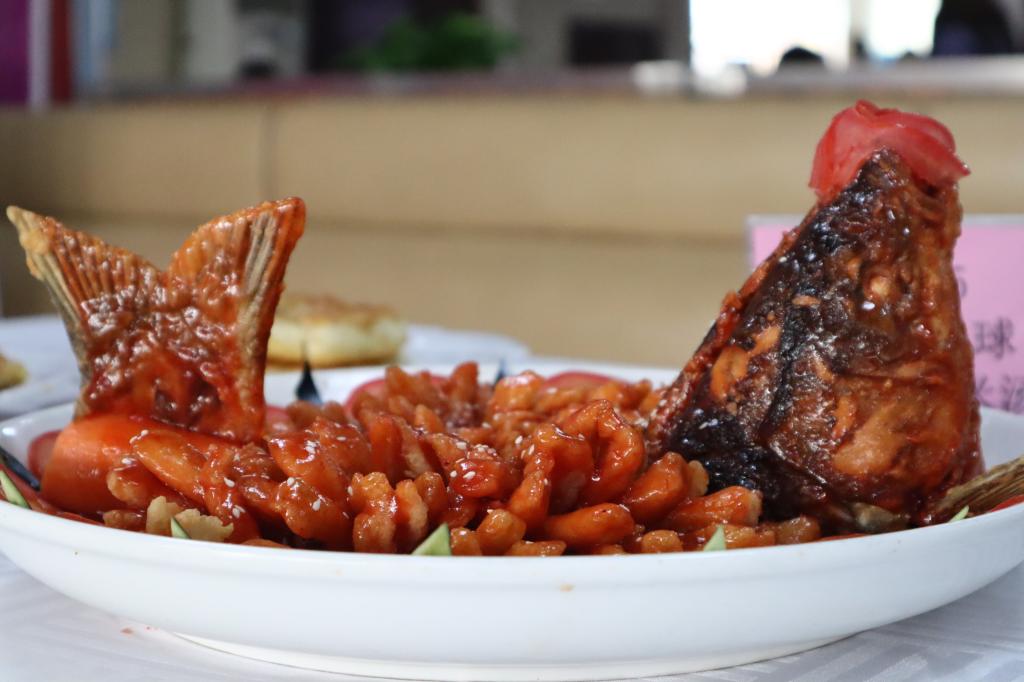 楚园食堂每个档口的厨师纷纷亮出了绝活,煎炒烹炸,各显神通,为学生们准备了一场美食盛宴。纸杯蛋糕、水果盘、招牌水煮鱼、麻辣香锅,羊肉火锅……一道道色泽鲜美的菜品从厨房中逐个端出,摆上餐桌,引得现场不少同学发出连声赞叹,活动现场各式各样的美食也吸引了无数师生驻足观看。