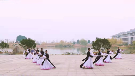 因疫情防控,今年湖北省高等学校大学生体育舞蹈改为线上举办,纵然比赛形式不同于以往,但我校同学有紧张有序,通过多轮选拔,在领队黄健,教练周靖雯、刘颖的带领下,无论是舞蹈的编排、音乐的选取,还是最终服装队形的设计,老师和队员们都反复推敲,力求精益求精。在明德湖畔比赛视频的录制现场,随着自备的音乐缓缓响起,我校舞蹈队随之精彩绽放。