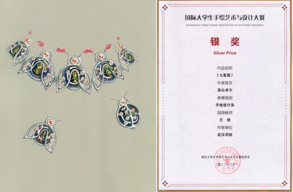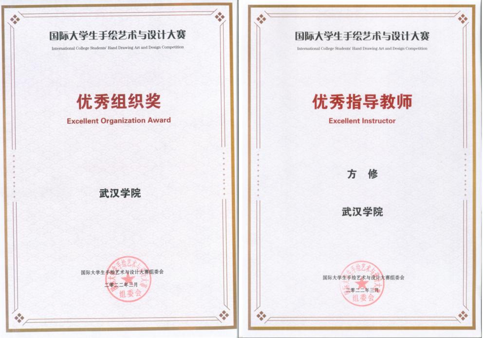 近日,2021国际大学生手绘艺术与设计大赛获奖名单揭晓。本届大赛以“绘艺中国,设想未来”为主题,设有手绘写生类、电脑手绘类、手绘设计类三大比赛类别。我校艺术与传媒学院工艺美术专业学生的作品在三个类别中取得了五银、六铜、十六项优秀奖、两项入围奖的优异成绩。工艺美术专业方修老师荣获本届大赛“优秀指导教师奖”,武汉学院获得本届大赛“优秀组织奖”。