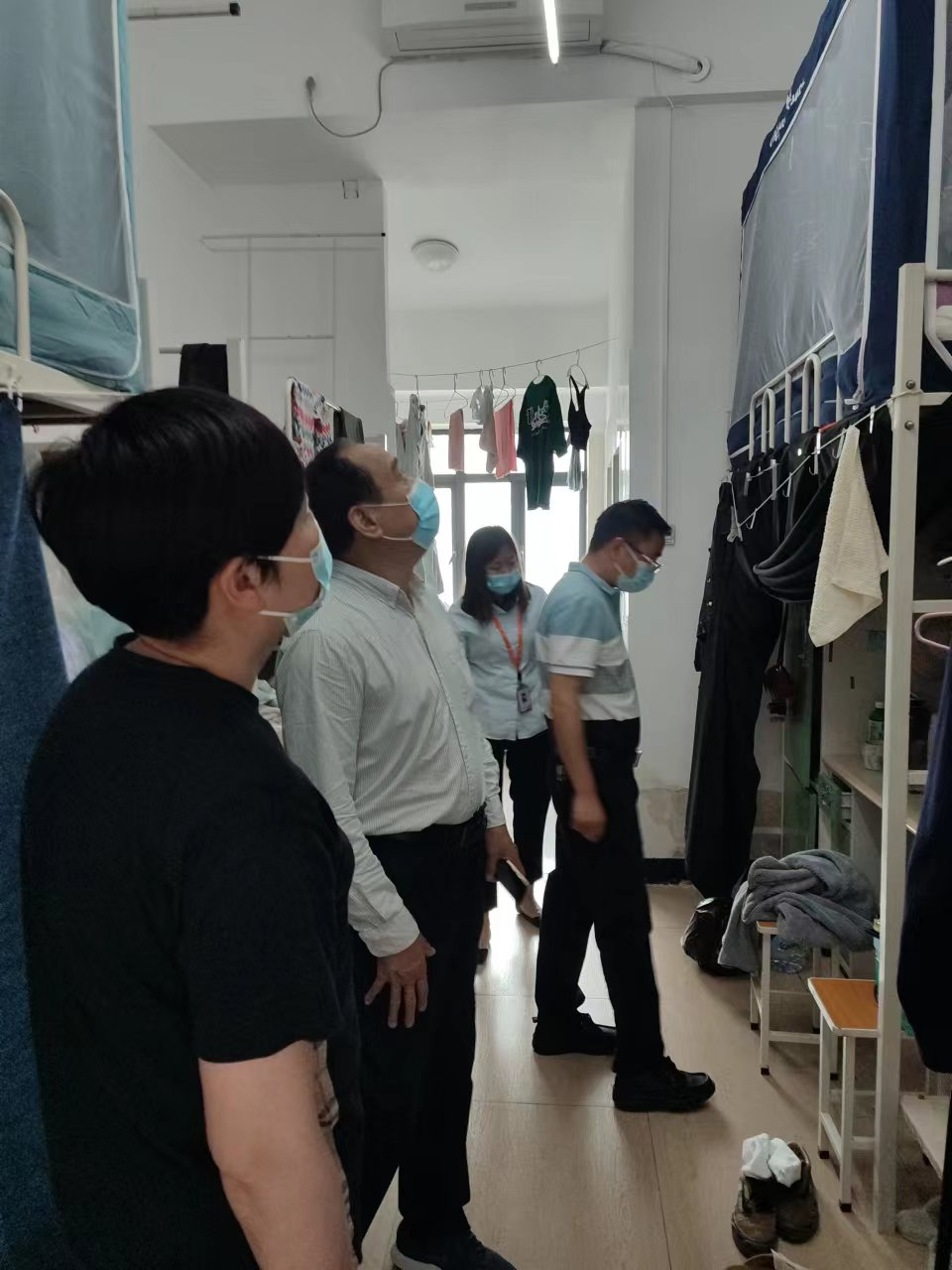 周承早每到一间宿舍,他都认真查看宿舍卫生情况,检查储物柜、桌子、椅子等物品的配备情况,并与学生进行交谈,详细询问学生住宿、就餐等情况。现场工作人员一一记录检查中存在的问题。