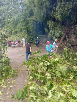 由于暴雨导致多处树木被风吹倒,道路被阻塞,驻村工作队立即行动起来,与村两委班子一道奋战一线,组织人力打开交通要道。雨势稍缓后,驻村工作队迅速入户了解村民受灾情况,安抚受灾群众情绪,开展灾情排查,此灾暴雨导致全村170户房屋遭受到不同程度的损坏,10余户屋内进水,几乎每户村民家里都遭受到了不同程度的财产损失。