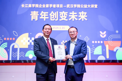 当天,第七期长江公益大讲堂在武汉学院开讲,由长江商学院管理科学教授、美洲市场副院长陈宏教授及同程集团创始人、董事长吴志祥精彩开讲,启迪学子。吴志祥还在现场宣布,将选拔一名武院学子作为他亲自培养的管培生。