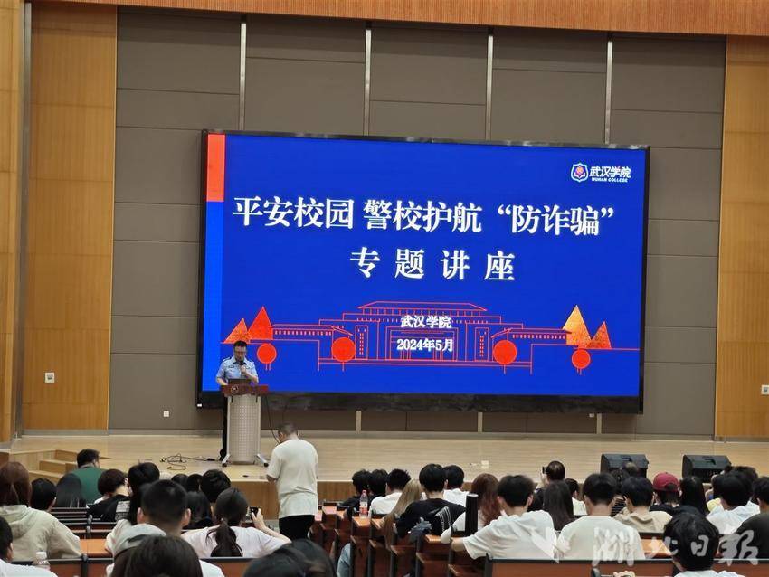 据介绍,武汉市成立了百余支由民警、辅警、网格员、志愿者组成的“平安高校宣讲团”,深入该市83所高校,全年不定期开展反诈宣传。5月29日下午,民警陶涛在武汉学院开展“平安校园 警校护航‘防诈骗’专题讲座”,为500余名师生分析了最新的涉网诈骗案例。