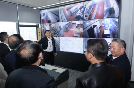 在总部,一块实时直播大屏引发考察组关注。屏幕上清晰呈现了该公司服务的213家合作单位后厨实况,武汉学院食堂后厨亦在其中。后厨环境窗明几净,工作人员规范作业的场景一目了然。