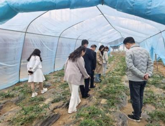 在广水市蔡河镇农业科技示范基地——腾龙蔬菜基地,连片的蔬菜大棚在阳光下熠熠生辉,翠绿的蔬菜长势喜人。在广水乡投集团瞿霞总经理、邓亚娇经理陪同下,调研小组一行深入田间地头,仔细询问蔬菜品种选育、水肥管理、病虫害防治以及收益分配等情况。针对基地发展痛点,郑洪涛提出要强化科技赋能,引入智慧农业管理系统,提升蔬菜种植精细化水平,同时探索农旅融合新模式,打造集观光、采摘、体验于一体的休闲农业示范点。
