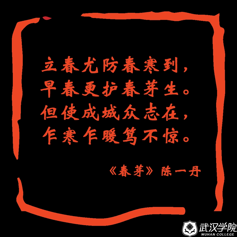 一种天气,两样心情。是添加衣物,适当春捂,做好预防?还是消极无助,等待踌躇?武汉学院的春天,有赖各部门的共识和进取心,以负责任的心态,沟通协调,落到实处,唯有此才不负阳春三月的期待。你看春芽,看似是一夜之间绽放,却是经过漫长时间的积蓄,我们对此珍惜也要有耐心。同时我们有坚定信心,我们无惧倒春寒,积极预防,主动作为,稳定向前,毕竟春来到!