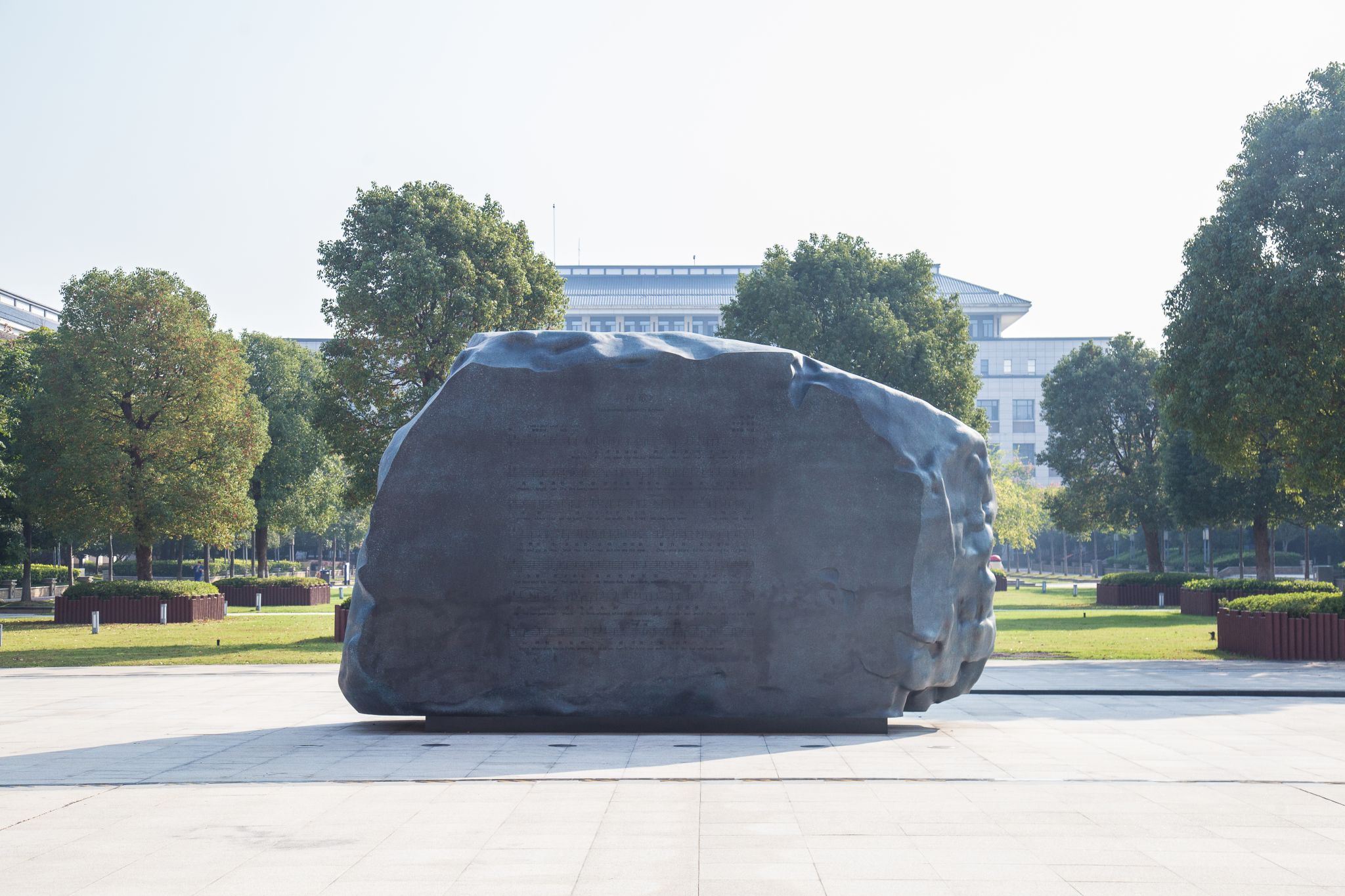 《使命》雕塑坐落在学校中轴线上的陈一丹伉俪图书馆前,她是为庆祝学校建校二十周年的献礼。该雕塑由艺术家王兴刚创作,采用深翠绿色青铜和浅米色花岗岩基座铺设,上面刻有“三明”使命和《明校歌》,刻有学校创办人陈一丹先生的手印。“三明”,即明师、明生、明校。是陈一丹先生十年前提出并确立为办学使命。