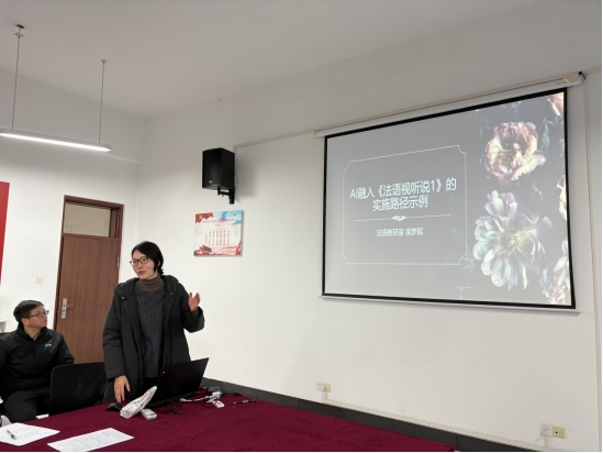 在演示汇报会上,王梦瑶老师首先以《AI赋能商务英语文化背景中的应用实践》为题展开汇报。深入探讨了人工智能技术如何系统性地融入商务英语教学的三大核心维度。她首先展示了如何借助豆包、DeepSeek等AI工具,对复杂多变的商务英语词汇进行高效梳理与深度解析,生成结构清晰、内容丰富的扩展性学习表格,为学生构建坚实的语言基础。在文化背景教学层面,王老师创新性地引入“即梦”AI视频生成技术,将抽象的文化差异、商务礼仪及跨文化沟通场景转化为生动直观的影像资料,使晦涩的文化概念跃然眼前,极大激发了学生的兴趣与课堂参与热情,实现了沉浸式文化体验。与此同时,她着力打造智能化知识库体系,通过动态整合海量教学资源并依托算法实现精准推送,不仅为教师提供了强大的备课支持,更依据学情数据实时优化教学内容,形成“分析——推送——反馈——迭代”的教学闭环。这三者有机融合,共同推动了商务英语教学从静态知识传授向动态能力培养的转型,显著提升了教学效能与学习质量,为商务英语教育的数字化提供了可复制的实践路径。