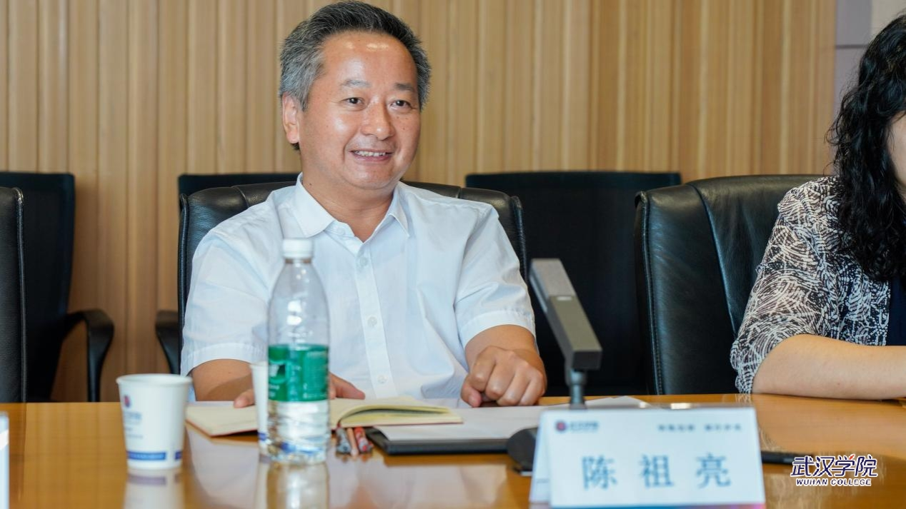 陈祖亮对九三学社十堰委员会一行到访我校表示热烈欢迎。他重点介绍了学校的发展历程、办学理念、学科专业和人才培养等基本情况。