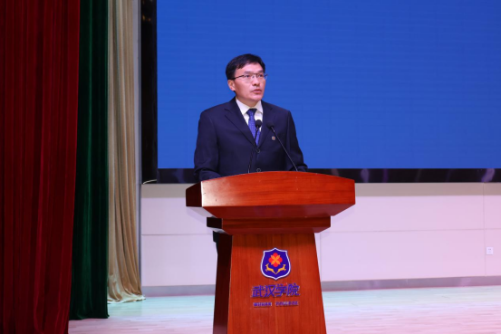 国家奖学金获得者代表、艺术与传媒学院学生宋炳庆发言。她回顾了在武汉学院的学习历程,对学校提供的帮助表达了深深的感激之情,并分享了在学习过程中所面临的种种挑战及解决办法。她表示在未来将继续保持谦逊、谨慎、勤奋和好学的态度,在时代的洪流中不断自我提升。