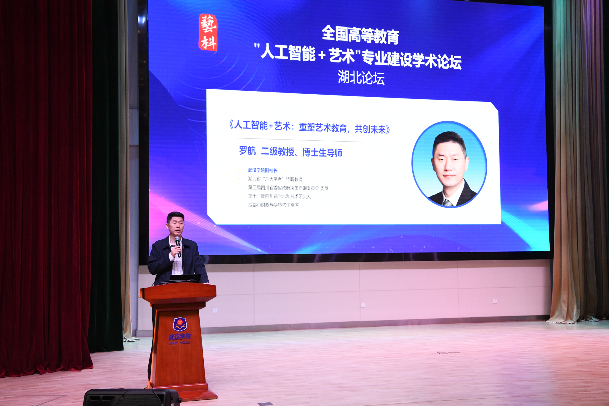武汉学院副校长罗航教授在开幕式上致辞。他强调,专业是高校立德树人的基本载体,武汉学院高度重视学科交叉与产教融合,与腾讯、华为、中软国际等企业共建产业学院,开设“腾讯班”“华为班”等特色班,推动“学历+证书”双轨培养。近年来,学生在学科竞赛与创新创业项目中屡获佳绩,展现了“人工智能+艺术”融合育人的阶段性成果。