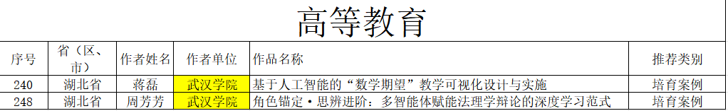教育部教育技术与资源发展中心2025年教师人工智能应用案例征集结果近日揭晓,我校信息工程学院教师蒋磊、法学院教师周芳芳申报的教学案例,双双获评全国高等教育推荐案例(培育案例)。