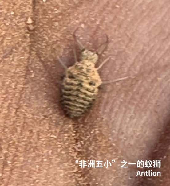向导告诉我们一个趣闻,除了非洲五霸Big Five,草原上还有Small Five(非洲五小),连名字也都一一对应,分别是蚁狮、象鼩、牛纹鸟、豹纹陆龟和犀牛甲虫。