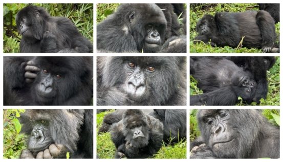 出发前,护林员再三叮嘱:遇到猩猩保持距离,不得摘下口罩,避免人类病毒感染大猩猩。山地大猩猩与人类的基因差异仅约2%,看看这些拍摄的照片:当它们饶有兴致地注视我们时,那种凝视极具灵性而又神秘莫测。