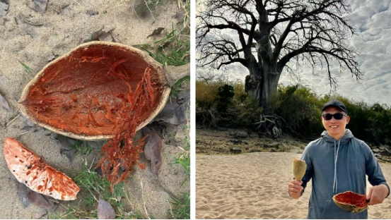 向导告诉我们,当地居民甚至把猴面包树视作神灵,每周日进行祈祷。这树浑身是宝,种子可压榨油,嫩叶可制作浓汤或蔬菜,当地人相信喝了这种汤可长寿。不仅于此,最后,果实吃完,连外壳都会被利用起来,因为它质地坚硬且耐腐,可制作成各类简易容器,如瓢、碗和杯子等。
